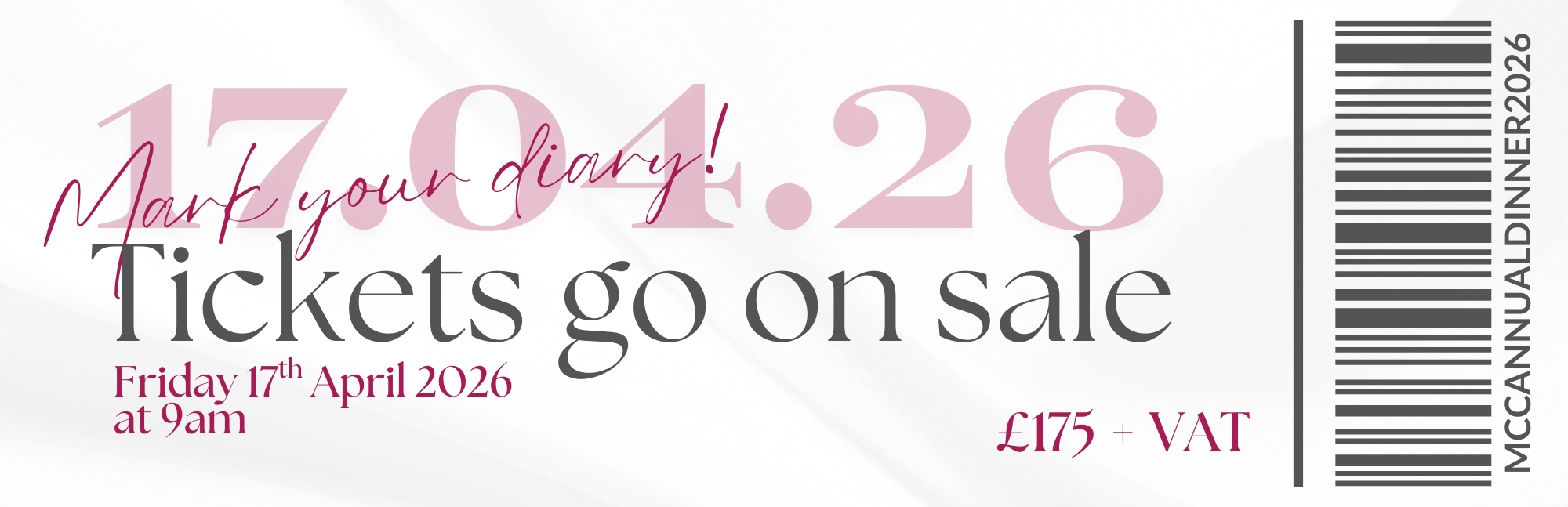 Tickets for the Annual Dinner go on sale 17th April 2026 at 09:00. The tickets sold out in less than 1 hour last year and we anticipate the same for 2026.