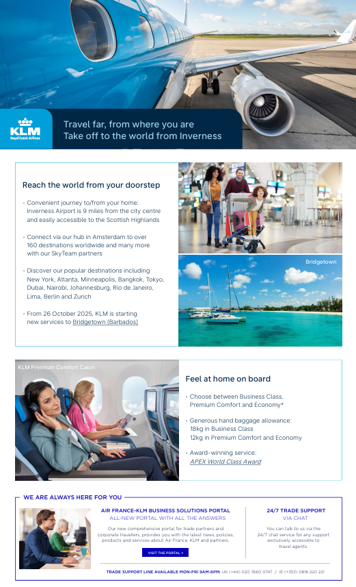 For business travellers and trade partners, Air France-KLM has also introduced a new Business Solutions Portal, offering 24/7 support and access to the latest travel information — reinforcing Inverness Airport as a truly global starting point.