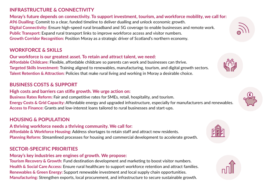 Moray Chamber of Commerce has released "Our Business Plan for Moray", a comprehensive manifesto detailing the actions required to unlock growth, secure jobs and strengthen communities in the region. Positioned ahead of the Scottish Elections, the plan serves as a clear, deliverable set of actions to achieve growth, opportunity and prosperity.